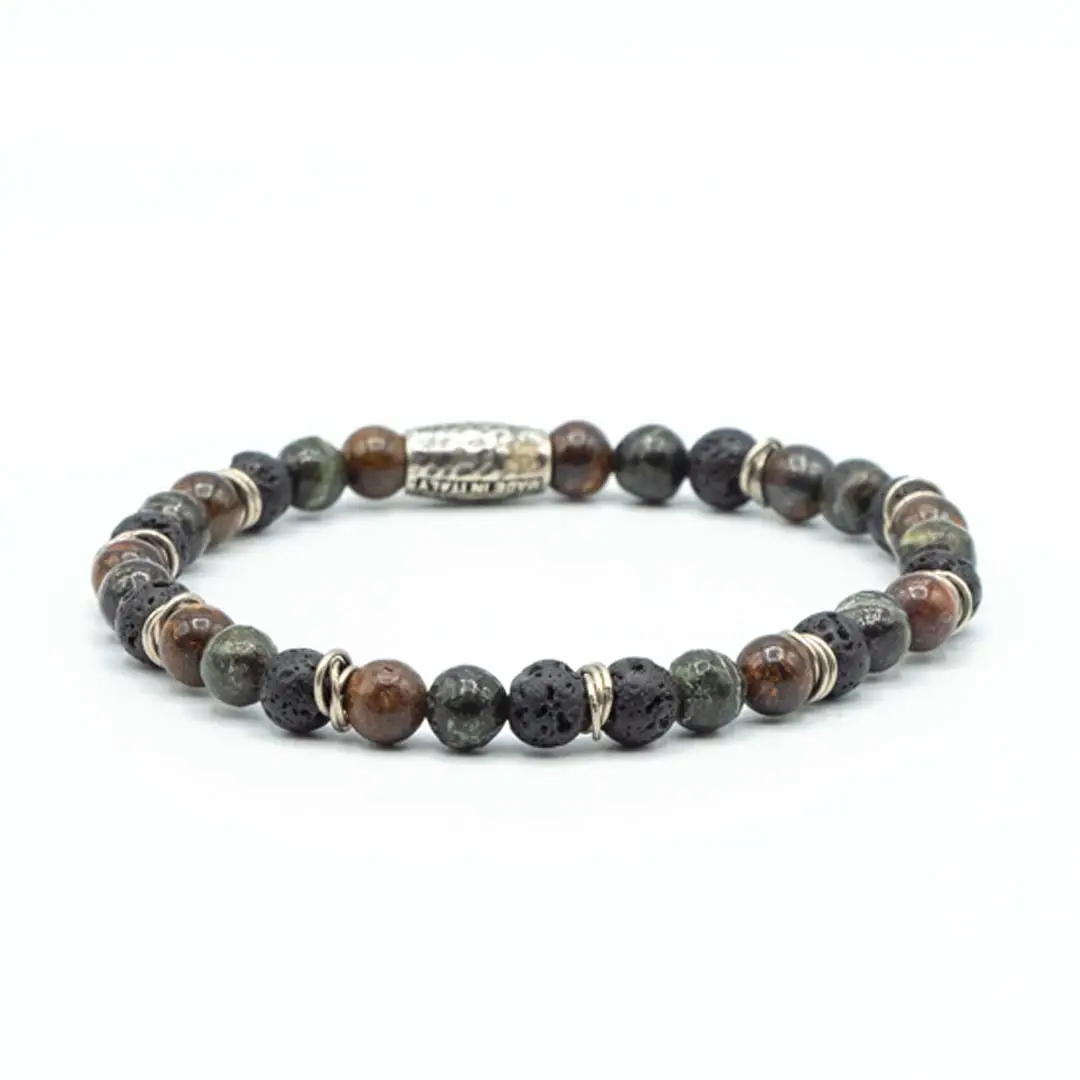 The Cocktail bracelet is a unique piece of jewelry, handcrafted with 6mm natural gemstones, carefully selected and hand-threaded by our artisans. Each stone is interspersed with 925 Silver elements, including a hammered barrel-shaped silver insert engraved with MOREBellagio, creating an elegant and refined design. A perfect accessory to add a touch of color and style to your look.
