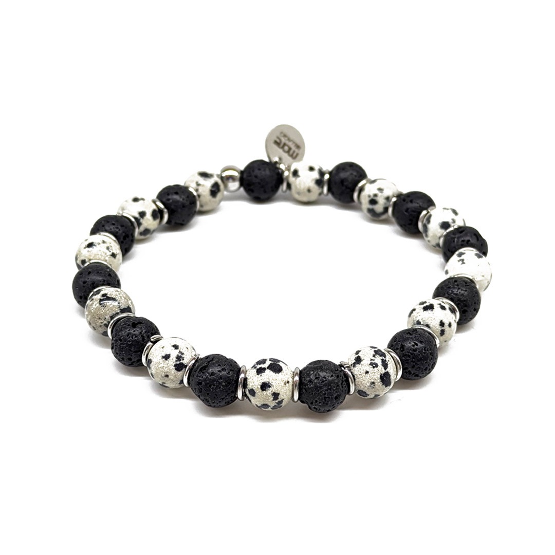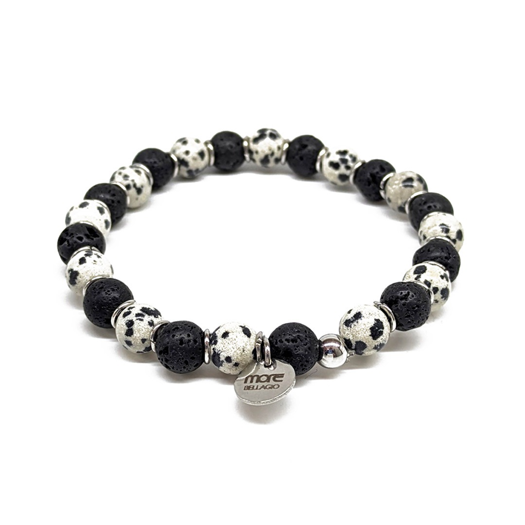 Gemstone/Steel Pietre8 Bi Color Bracelet Lava and Dalmatina